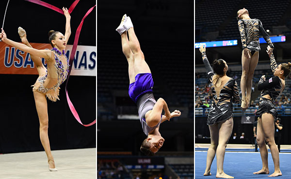 But Rhythmic wasn’t the only discipline that showed a true variety of talent tonight. The competition continues to be fierce between the two Senior Mixed Pairs: reigning National Champions Axel Osborne and Tiffani Williams, and Aisley Boynton and Maxim Sedochenkoff, both from Realis Gymnastics. After a dominant night one, Boynton and Sedochenkoff had another strong showing by keeping their lead with a score of 55.423, but aren’t getting overly excited just yet.