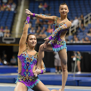 Eighteen-year-old Aubrey Rosilier and 15-year-old Emily Davis won their second-straight women’s pair national title this weekend at the USA Gymnastics Championships. The win extends an impressive and historic run of results, including a recent fourth-place finish at the World Games in Wroclaw, Poland.