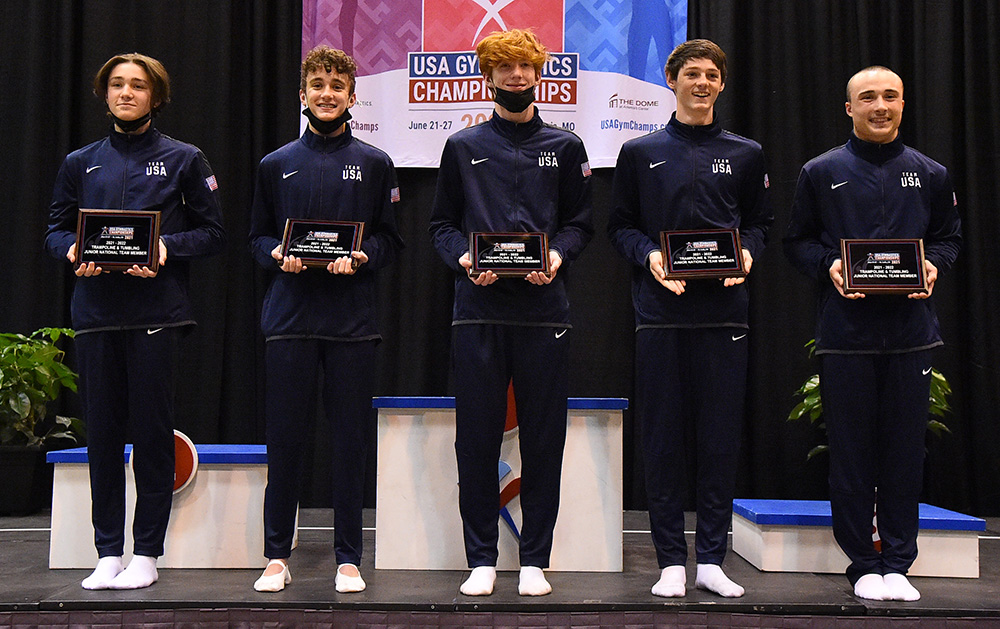 The 2021 USA Gymnastics Championships junior elite trampoline & tumbling competition was held June 21-24 at the America’s Center Convention Complex in St. Louis. National champions in trampoline, tumbling, double-mini trampoline and synchronized trampoline were crowned. The top-three placements in each division are listed below.